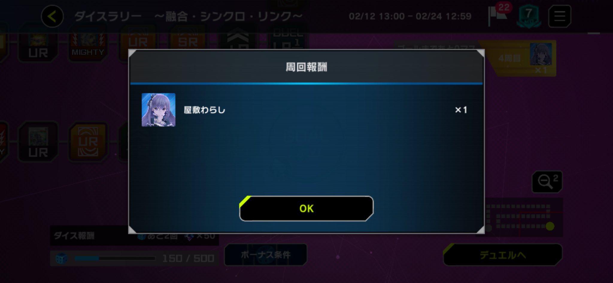 周回報酬には《屋敷わらし》のメイト。これが、どうしても欲しかった。